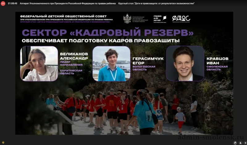 Сегодня у нас опять есть повод для гордости! Даже в свой День рождения Ваня представляет родную Смоленщину на федеральном уровне в качестве спикера на «круглом столе» по теме «Дети в правозащитной сфере: от результатов к возможностям», проводимом Уполномоченным при Президенте РФ по правам ребенка.